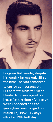 When the mother of the 19-year-old Evagoras Pallikarides appealed to the young, (in her 30s then) Queen Elizabeth, who had recently become mother, asking to pardon her son, the latter wasn’t moved by her plea. Not even her husband, partly of Greek origin, felt the need to persuade her. In the meantime, fresh was the blood of the Cypriot fighters on the side of British forces during World War II, saving her majesty’s ass from her cousins, the Nazis!