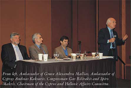 AHEPA’s former Supreme President (1995-1997) Dr. Spiro J. Makris, in his capacity as chairman of the Cyprus and Hellenic Affairs Committee, one of the organization’s most important and popular, held a session in which the Ambassadors of Greece and Cyprus, Alexandros Mallias and Andreas Kakouris respectively, along with Congressman Gus Bilirakis, participated and spoke of ways Greek-Americans could help in advancing issues of common concern through the American political system. At the end of the meeting, Makris, one of the most respected AHEPA leaders, spoke to NEO and along Gus Bilirakis, urged Hellenes in America to become more active and aggressive in seeking accountability from their elected officials.