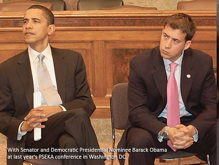 When he was elected to office on November 7, 2006, Alexi Giannoulias became at the age of 30 the youngest State Treasurer in U.S. history. But since Illinois’ economy is the 7th largest in the U.S. that means he’s responsible for investing $17 billion in taxpayer dollars on a daily basis! Two years later, as the fortunes of his mentor and friend Senator Barack Obama have risen at the White House level, pundits say that the energetic Greek American, who like Obama ran against many odds and won, is very close to becoming the youngest officer in even higher echelons. Some talk about the Senate, others about running for Governor, some even have him getting a position in the Obama administration.