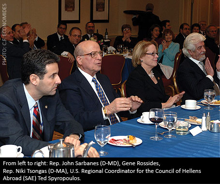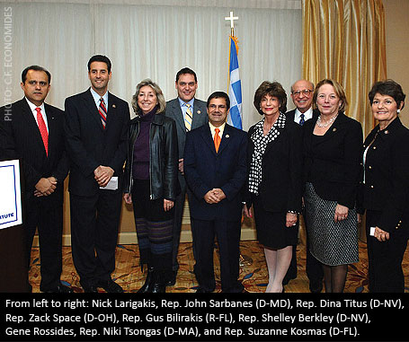 The American Hellenic Institute (AHI) hosted recently a dinner in honor of the Greek American delegation of the 111th Congress, Gus Bilirakis (R-FL), Shelley Berkley (D-NV), Suzanne Kosmas (D-FL), John Sarbanes (D-MD), Zack Space (D-OH), Dina Titus (D-NV), and Niki Tsongas (D-MA) at the Capital Hilton Hotel in Washington, DC. Senator Olympia Snowe (R-MA) was unable to attend the event do to a prior engagement.