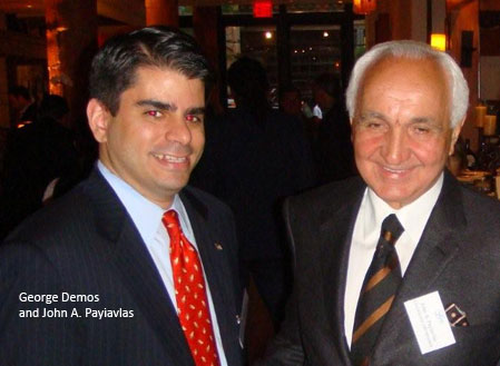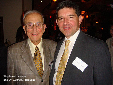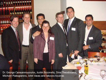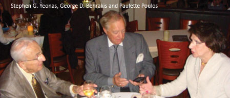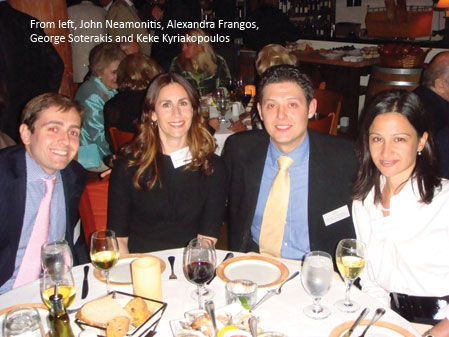 The night before the Board meeting, Leadership 100 members and prospects, 60 in all, were hosted once again at Kellari’s Parea in the Gramercy Park section of New York City, to continue the 25th Anniversary Membership Campaign into 2009, with a goal of 50 members. Last year, a similar event helped the 2008 goal reach 50 new members. Peter J. Pappas, Membership Chairman for the Direct Archdiocesan District and co-owner of the restaurant with James, George and Peter Pantelidis, served as Master of Ceremonies for the evening. Pappas welcomed members and prospects from throughout the New York region, as well as from the Midwest and West Coast, introducing many of the young professional Leadership 100 Partners. Also in attendance was the President of the Hellenic Medical Society, Dr. George Tsioulias.