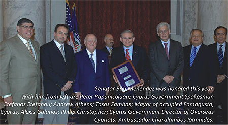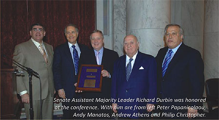 Members of Congress who were honored at the conference included: In the U.S. Senate, Assistant Majority Leader Richard Durbin (D-IL) with the Paraskevaides Award, leading advocate for Hellenic issues on the Senate Foreign Relations Committee and member of the Senate Leadership Bob Menendez (D-NJ); fellow advocate for Hellenic issues on the Foreign Relations Committee, Barbara Boxer (D-CA), and long-time advocate for Hellenic issues and member of the key Senate Foreign Operations Appropriations Subcommittee Arlen Specter (D-PA). In the U.S. House of Representative, conference participants honored House Foreign Affairs Committee Members Ed Royce (R-CA) and Russ Carnahan (D-MO), who both just returned from separate Congressional Delegation visits to Cyprus.