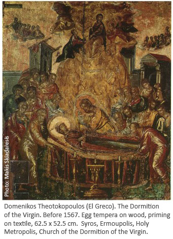 At the core of the exhibition are eleven superb icons from the Collection of Ecclesiastical Art, Saint Catherine of the Sinaites, Heraklion, Crete. Founded around the 10th century as a dependency of the monastery of the same name at Mount Sinai, the Church of St. Catherine in Heraklion supported a large and learned monastic community by the 16th century and since 1967 has housed a highly important collection of Orthodox icons and religious objects. Ten of the panels from the Collection of St. Catherine have left Crete only once before, in 1993, for an exhibition in Athens. The eleventh of this group, a Last Supper by Michael Damaskenos, has been outside of Greece only once, for a 1999 El Greco exhibition that traveled to Athens, Madrid and Rome.