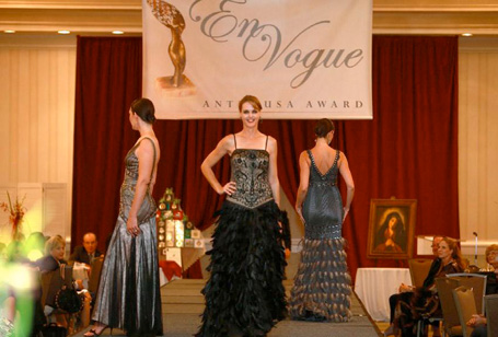 The afternoon also included an amazing fashion show, with couture by famous names from around the world, but delighted to see Greek-American designers featured like the highly, award winning James Galanos, who’s work is characterized by exacting craftsmanship, particularly in the extensive use of hand beading, full, loose dresses and chiffon coats over simple sheaths, and extensive use of silk fabrics. Cypriot-born designer George Georgiou, was also featured at the show. The San Francisco apparel entrepreneur with a world-wide chain of boutiques prides his collection focusing on the feminine figure, with European-inspired style reflecting up-to-date color trends, fabrics, and contemporary styling, while providing beautiful designer clothing at ready-to-wear prices.