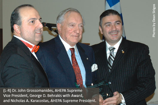 A member of AHEPA for 50 years, Behrakis has devoted his philanthropy and leadership to a variety of institutions, including Northeastern University, Brigham & Women’s Hospital, the Boston Symphony Orchestra, the Harvard School of Public Health, and the Boston Museum of Fine Arts, where The George D. and Margo Behrakis Art of the Ancient World Wing was recently dedicated.