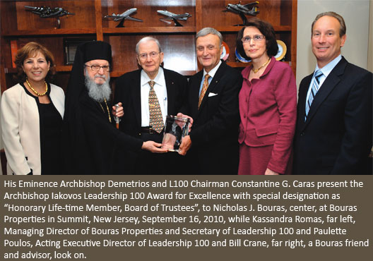 The Leadership 100 Board of Trustees voted unanimously at their meeting in New York September 10, 2010 to designate Nicholas J. Bouras, one of the first members to join, and a member of its Board of Trustees since 1997, “Honorary Life-Time Member of the Board of Trustees.”