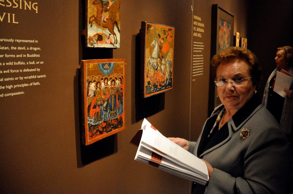 Marilena Christodoulou who was part of the Rubin Museum’s founding team and has served as its Chief Financial Officer since before it opened to the public in 2004, and Cathedral Dean Very Reverend Frank Marnagos welcomed the guests. “I never thought I would see Greek icons in a museum of Himalayan art, so this is very exciting for me,” said Marilena. The list of the outstanding guests included Bishop Savas of Troas, representing Archbishop Demetrios of America, Aghi Balta, Consul General of Greece, Evangelos Kyriakopoulos, Consul of Greece, Koula Sophianou, Consul General of Cyprus in New York, Crossroads of Civilization curator Dr. Sofoklis Hadjisavvas, Father Vasilios Bassakyros, Pastor of the Church of St. John the Baptist in Manahattan, and Mr. Emmanuel Tiliakos whose collection the icons were taken from for the exhibition.