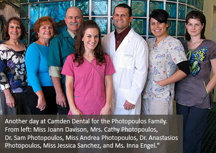 Friend us “Camden Dental Center” on Facebook or visit us at www.samphotopoulosdds.com to learn more about our office.