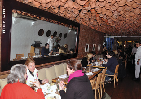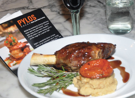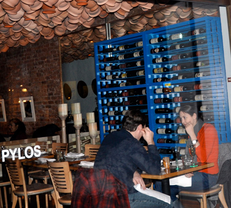Along the uber trendy and artistic 7th Street in the East Village, nestled between some of Manhattan’s most loved shops such as Porchetta, Butter Lane Cupcakes, and Angelo Lambrou Atelier, lies Pylos, a rustic and quaint Greek restaurant. Its simple wooden exterior and authentic Hellenic interior, complete with Mediterranean blue colored shutters and over 1,000 handmade clay pots packed tightly on the ceiling, instantly differentiates Pylos from all the other shops on the street.