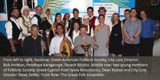 The event titled “SING IN ME, O MUSE!” Was sponsored by the Bowery Arts + Science, City Lore, and the Federation of Hellenic Societies of Greater New York. Billy Chrissochos, George and Terry Delis and Athanasios Aronis of the Federation’s Cultural Committee, helped make the event, that took place at the open space, by the federation’s main entrance, a truly one of a kind experience.