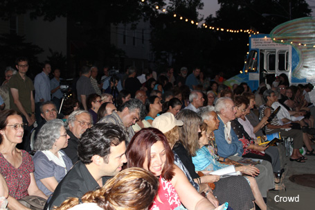 The night featured poetry performances in Greek and English by Dean Kostos, Penelope Karageorge, Nicholas Samaras, and Sylvia Mouzourou; music by the Greek Folk Ensemble; dance by the Greek-American Folklore Society and projections of the poems of Sappho, Cavafy, Ritsos, Elytis and other local poets.