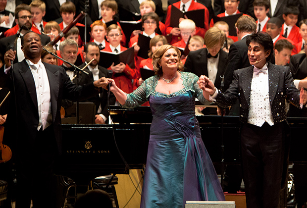Following a rousing overture by conductor, and Nashville resident, David T. Clydesdale, Dino appeared in a flashing costume befitting his role as host, in short order introducing the Puerto Rican tenor Daniel Rodriguez to sing the Star Spangled Banner, Dr. Robert Stearns gave a passing rendition of the Hatikva (“Hope”, the Israeli national anthem), and Israel’s New York Consul-General Ido Aharoni.